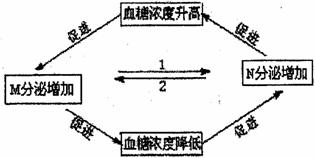 (2)下图为人体内血糖的激素调节示意图,1的作用效果是 (抑制、促进):激素M与激素N在生理作用上的关系为 。