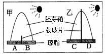 (3)若图中甲匀速旋转,则比较琼脂块AB的生长素含量是:A B