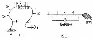 (1)图甲中电激E,结果A发生运动反应;电激B,结果A反应而E无反应。则图中的感受器是 (A、E)。