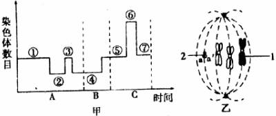 (5)若甲图表示某一个体的发育过程,该个体的基因型为AaBb,两对等位基因独立遗传,则③阶段细胞中的基因组成为__________,⑥阶段细胞中的基因组成为__________;基因A与a的分离发生在[ ](填数字)阶段。