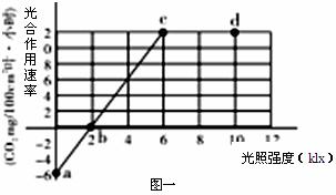 (1)根据图1,当光照强度为4Klx时,该植物叶片总(真正)光合作用速率是每100cm2叶每小时吸收CO2 mg。