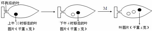 (5)某同学欲测定植物叶片叶绿体的光合作用速率,作如图所示实验。在叶柄基部作环剥处理(仅限制叶片有机物的输入和输出),于不同时间分别在同一叶片上陆续取下面积为1cm2的叶圆片烘干后称其重量。M处的实验条件是将整个实验装置遮光3小时(不考虑取叶圆片后对叶生理活动的影响和温度微小变化对叶生理活动的影响)。测得叶片的叶绿体光合作用速率=_ 。