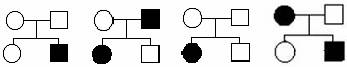 17.在下列遗传系谱中,能肯定只能是由常染色体上隐性基因决定的性状遗传是(阴影者表示隐性性状)