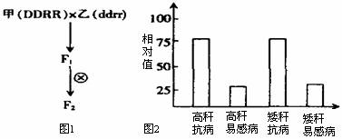(1)上图1示杂交育种过程,其原理是 。F2代的高秆抗病类型中能稳定遗传的概率 , F2代中重组类型的概率 。