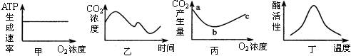 C.丙图表示酵母菌呼吸时氧浓度与CO2产生量的关系,a点ATP产生量最大