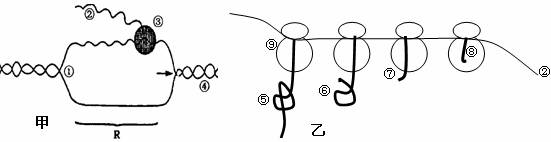 (2)乙图中多聚核糖体上合成⑤⑥⑦⑧的原料是 ,该过程可以说明蛋白质合成的特点 。