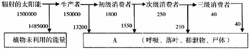 31.下图为生态系统中食物链所反映的能量流动情况,图中箭头表示能量移动的方向,单位为kcal(m2·a)。下列说法错误的是 ( )