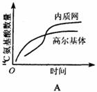 25.从某腺体的细胞中提取一些细胞器,放入含有14C氨基酸的培养液中,培养液中含有这些细胞器完成其功能所需的物质和条件,连续取样测定标记的氨基酸在这些细胞器中的数量,下图中能正确描述14C氨基酸数量的曲线是 ( )