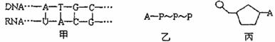 A.甲图中共有5种核苷酸 B.乙图所示的化合物中含有3个高能磷酸键C.甲、乙、丙中都含有腺嘌呤 D.丙图所示物质含有的单糖只能是核糖
