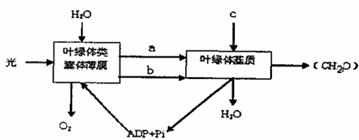 54.下图为光合作用联系示意图,如在适宜条件下载培的小麦,突然将c降低至极低水平(其他条件不变),则a、b在叶肉细胞中的含量将 ( )