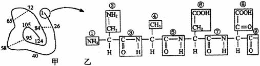 13.下面是某蛋白质的肽链结构示意图(图甲,其中的数字为氨基酸序号)及肽链的部分放大图(图乙),请据图判断下列叙述正确的是