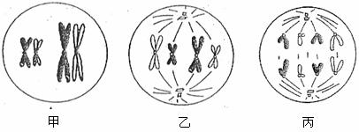42.下列甲、乙、丙三图分别表示某些生物的三个正在进行分裂的细胞,根据图回答(8分):