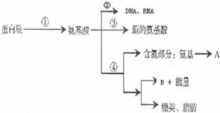44.下图为人体内蛋白质代谢过程示意图,请据图回答(7分):
