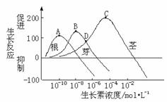 (3)当生长素浓度为D时,对芽的生长有 (促进、抑制)作用。