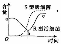 19.肺炎双球菌转化实验中,将加热杀死的S型细菌与R型活细菌相混合后,注射到小鼠体内。在小鼠体内,S型、R型活细菌含量变化情况如下图所示。下列有关叙述错误的是 ( )