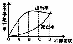 27.科研人员对某海洋食用生物进行研究,得出了与种群密度相关的出生率和死亡率的变化,如下图所示,请据图判断下列说法中,不正确的是( )