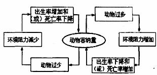(2)下图为某生态系统中,一动物种群自动调控图。该动物的数量常常随环境资源的改变而发生波动(注:环境中的动物容纳量是指环境资源能承载的最大动物数量)。