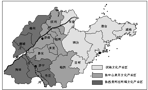 据大众网报道:文博会上山东省17市布展将连成一体,形成整体格局,展示山东文化产业的风采。为此,将在文博会上布置三个板块:东部以青岛为中心,布局滨海文化产业带展区,展示山东半岛城市群以及半岛制造业基地的文化产业发展成果;中部以济南为中心,布置以山、泉为代表的鲁中文化产业带区,体现山(泰山)、泉(泉城)文化特色;西部以济宁为中心,布局儒家文化、运河及黄河文化产业带,体现儒家文化、运河文化、运河物流等基本特色。这三个板块由东到西形成文化产业长廊,体现山东整体文化风貌(如下图)。