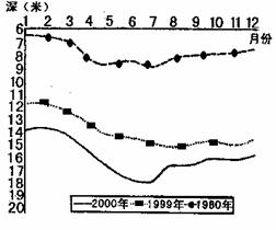 (2)全球变暖使该地区降水减少,蒸发量增大,是地下水埋深度年际变化的原因之一,除此之外还有: