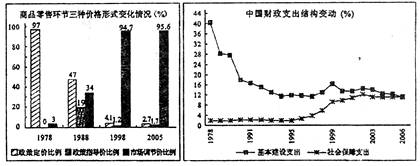 (1)“商品零售环节三种价格形式变化情况”图反映了三十年来我国经济发生了怎样的深刻变化?(3分)