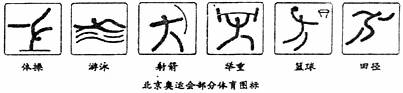 情境一:同学们从网络上下栽了各具特点的部分奥运会会徽和具有“篆书之荑”的第29届奥运会体育图标,“金玉良缘”的奥运奖牌,“祥云瑞霭”的奥运火炬,深深为中华文化的魅力所感染。为设计者的智慧所折服。