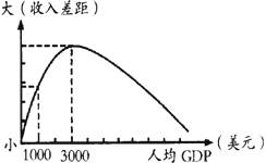 28、下图所示为库兹涅兹曲线,表明当一国人均GDP从1000美元向3000美元迈进时,往往是利益矛盾不断加剧,收入分化加速的时期。我国当前人均GDP达到2000美元。针对实际生活中存在的劳动者工资偏低现象,十七大报告提出逐步“提高劳动报酬在初次分配中的比重”,为此可以采取的措施有: