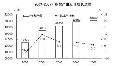 ③近四年粮食产量逐年减少 ④五年来增长速度逐年提高