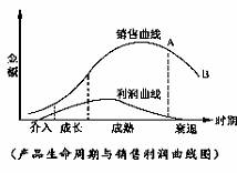 10.下图是产品生命周期与销售利润曲线图。如果要阻止产品生命周期从A点到B点运动,企业应