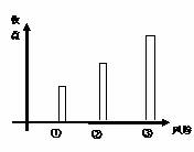 12.某公民把自己的闲置资金用于投资,一共选择了股票、金融债券和存款储蓄三种投资方式。下边柱形图是对这三种投资方式特点的描述,①、②、③应分别是 ( )