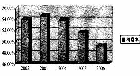 注:消费率是指在一定时期内一国最终消费占GDP的比重。据世界银行数据,1990年代以来,最终消费对GDP增长的贡献率,世界平均稳定在77%-79%。2006年广东消费对GDP增长的贡献率是37%,全国是39.2%。