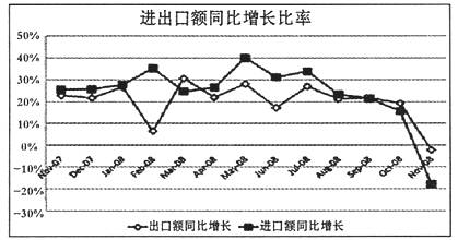 27.针对下图“2008年8月以来我国进出口额同比增长比率”图。以下措施正确的是( )