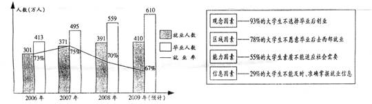 材料二:温家宝总理在政府工作报告中强调今年要全力保增长,保民生,保稳定。同时指出今年要千方百计促进就业,实施更加积极的就业政策。