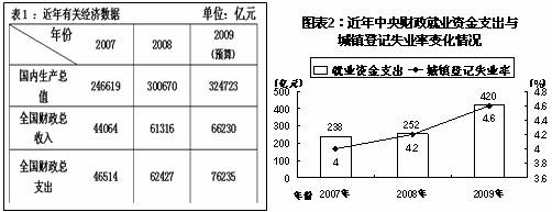 材料二:温家宝总理在政府工作报告中强调今年要全力保增长,保民生,保稳定。同时指出今年要千方百计促进就业,实施更加积极的就业政策。