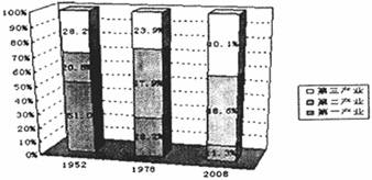 22.分析1952、1978和2008年三次产业结构图,下列关于1952、1978和2008年三次产业结构的认识正确的是 ( )