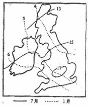 (2)该地1月和7月等温线分布的规律有什么不同?请分析其原因。(10分)