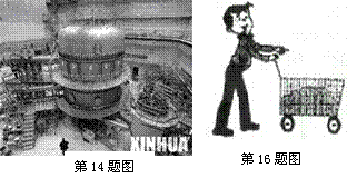 14、(★)(06上海浦东新区)图是中国科学家在建造的世界上第一个全超导核聚变"人造太阳"。在组装时,需要用如图所示的滑轮把重为1000牛的物体匀速提升12米,则作用在滑轮上的拉力F为______牛,绳子对重物所做的功为________焦,若提升重物所用的时间为1分钟,则绳子对重物做功的功率为________瓦。