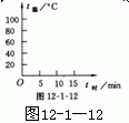32.(4')(实践应用题)将装有热奶的奶瓶放人室温的水中,图12-1-11容器中的水温约为20℃,热奶约为90℃,经过一段时间,再测量一下容器中水的温度和奶瓶中热奶的温度均为40℃.试在图12-1-12坐标系中分别画出容器中水的温度和奶瓶中热奶的温度随时间变化的大致图象.