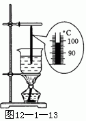 34.在某次实验中,烧杯中的水正在沸腾,温度计的示数如图12-1-13所示,此时水的温度为 ℃,继续对水加热,水的温度将 (填“升高”,降低”或“不变”).