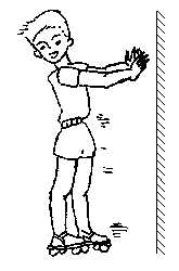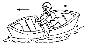 生活中这样的例子非常多.你游泳的时候,能感受到物体间力的作用是相互的,不知你思考过没有.你用力向后划水,手和脚对水施加向后的力.同时受到水对手脚向前的力,这个力使人向前游去.如图11-15,小明坐在一艘小船上,当他用力推开另一艘小船时,由于物体间力的作用是相互的,所以小明会受到另一艘船对他的作用力,带动小船远离,这两艘船会同时远离对方滑去.你滑过旱冰吗?也许你会有这样的经验?穿着旱冰鞋向后蹬,会使你向前行,向前蹬时,你会向后行,你想右拐滑,必须向左蹬.这些现象都是因为你对地面施加蹬力的同时,会受到地面与蹬力方向相反的力,使你向反方向运动.如图11-16,小明穿着旱冰鞋用力推一下墙,由于小明同时受到墙对他的反方向的作用力,小明会向后退去.