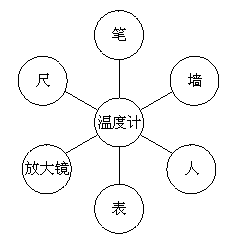 这种方法是在众多参与组合的物体中,有一个做为主体,其他物体呈辐射状绕在主体周围,进行组合时,周围的物体都要与主体进行组合.举个例子,小明运用“辐集式组合法”对温度计进行联想,他画出如下的联想图11-19开始进行组合联想:温度计--笔:一端有圆珠笔的温度计,这样测定温度后可以接着用它记录结果;温度计--尺:固定在刻度尺上的温度计;温度计--放大镜:一端有放大镜的温度计,将温度计上挖孔,嵌入放大镜,这样的刻度尺既可测长度,又可放大物体;温度计--表:一种既有表又有温度计的台历,这种台历很常见,你家可能就有;温度计--人:体温计,是专门为人测体温设计的温度计;温度计--墙:挂式的工艺型温度计.