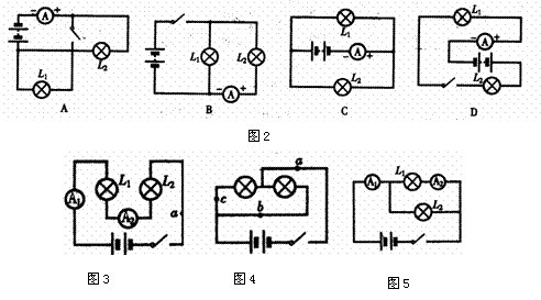 6.在图2所示的几种电路中,电流表只测L2电流的是( )