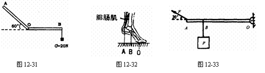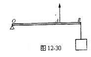 图12-30中,OB为轻质杠杆,OA=60cm,AB=20cm。在杠杆的B端挂一个所受重力为60N的重物,要使杠杆在水平位置上平衡,在A点加一个多大的竖直向上的拉力?