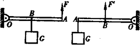 如图12-36所示的两种情况,OB=AB,物重均为G,两轻质杠杆均平衡.比较F、F'的大小,满足关系式( ) (题型四)