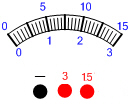如图是一种常用电压表的表盘。请在图上画出用它测量1节干电池两端电压时的接线情况及指针所在的位置。