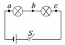开关后两灯均不发光,用电压表测量点路中a、 b间电压为0,b、