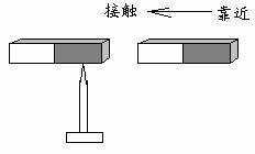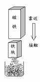(学生:没有。)当我把磁铁靠近到接触铁块的过程中,铁块就能吸引铁沙了,这又说明了什么?(学生:铁块有了磁性。)