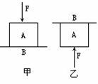 13.如下图所示,A为边长10cm的正方体,重5N,B为粗糙水平面,F为竖直作用在A上的力,大小为6N,则图甲中B受到的压强是_________Pa,图乙中B受到的压力为_________N.(南京)