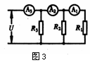 5.如图3,电源电压4V,R1=R2=4Ω,R3=2Ω.电流表A1、A2、A3的示数分别是多少?
