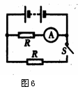 8.如图6所示的电路,当开关S断开时,电流表的示数是1A,开关闭合时,电流表的示数将 ( ).