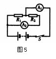 7.如图5所示的电路,电流表A1与电流表A2的读数之比是5:2,则两个电阻R1与R2之比是 ( ).